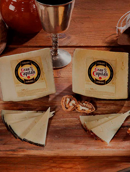 - Gran Capitán Curado: Es más intenso gracias a sus más de 6 meses de maduración, utilizando mezcla de leche de oveja y vaca.